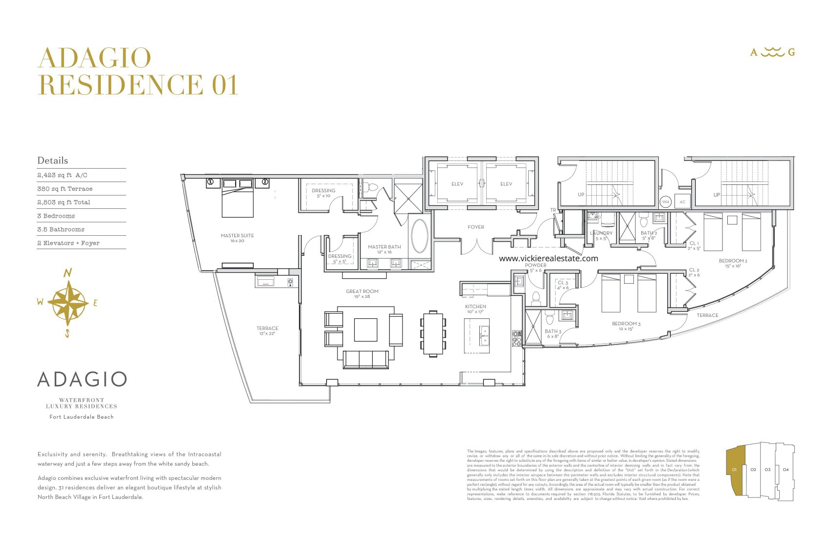 | Model A – Residence 01 | 2,423 | 380 | 3 Bedrooms and 3.5 Baths |